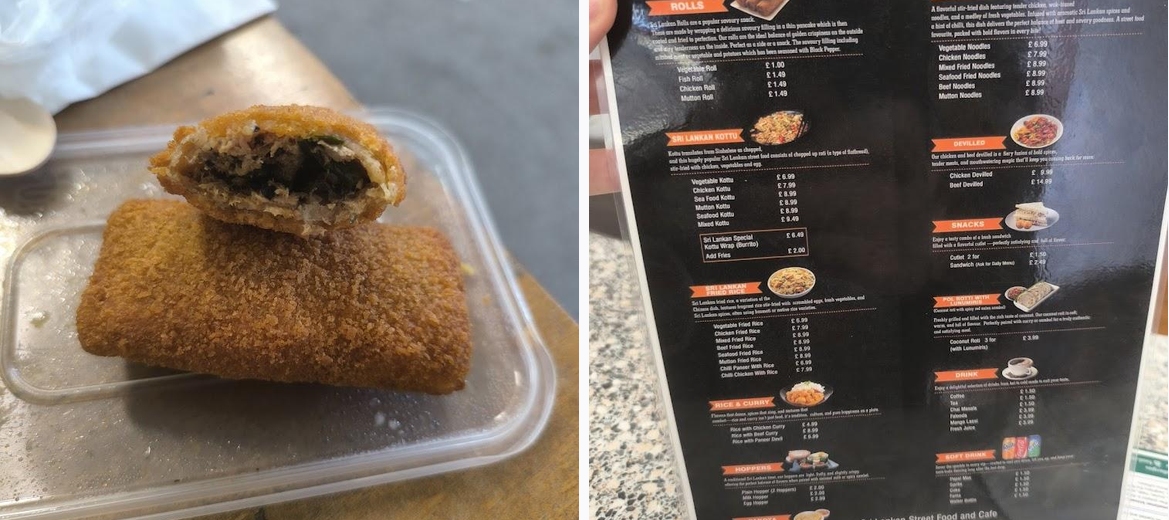 ⭐️⭐️⭐️⭐️⭐️ We had an amazing experience at this Sri Lankan street food spot! The pol rotti with lunumiris was fresh and full of authentic flavour – spicy and perfectly balanced. The mutton and chicken rolls were crispy on the outside and generously filled, a proper taste of home-style cooking. Washed it all down with some warm, aromatic chai tea, which was the perfect touch. The staff were super friendly and welcoming, which made the whole experience even better. Highly recommend if you’re after real Sri Lankan flavours in a casual setting!